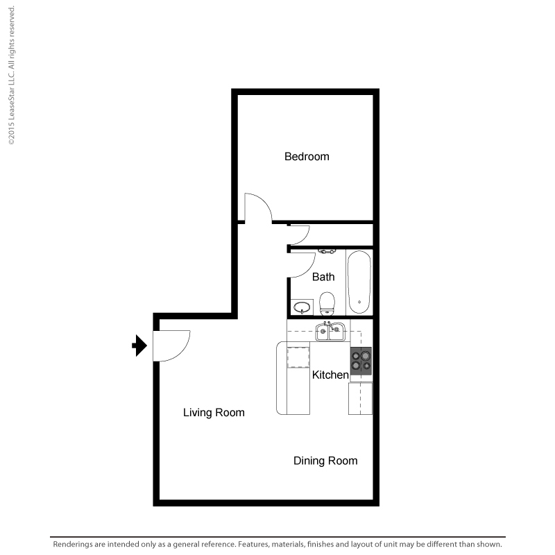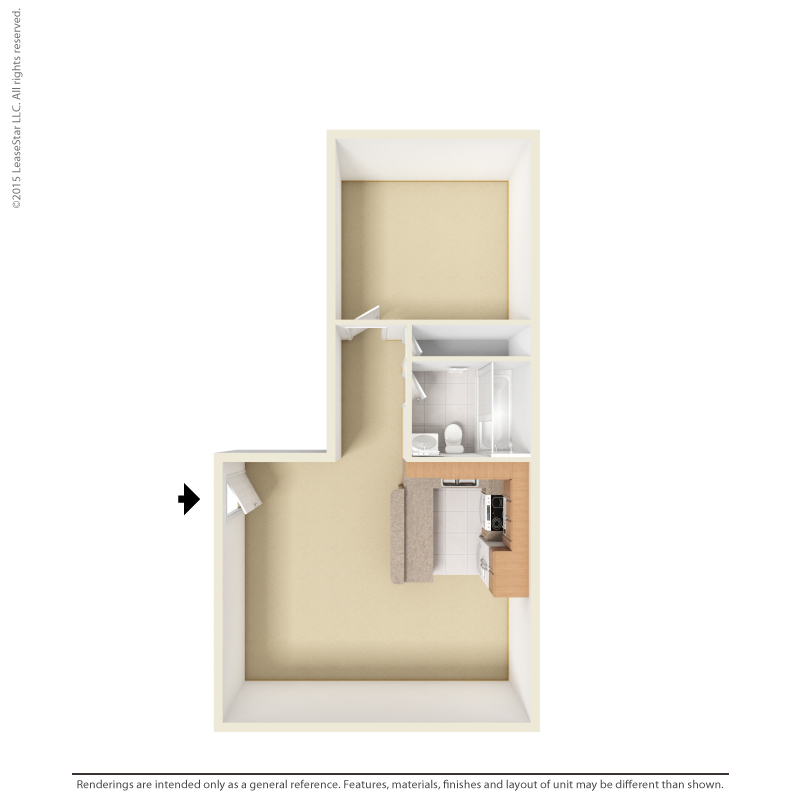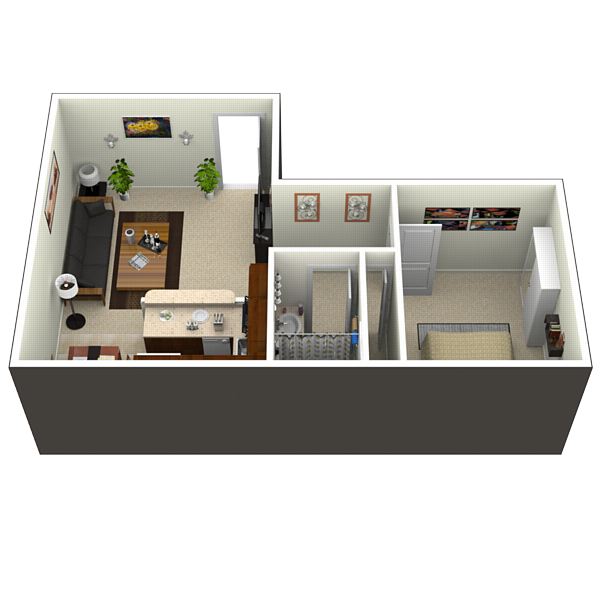 1 Bed, 1 Bath, 493 sq ftModel Gallery