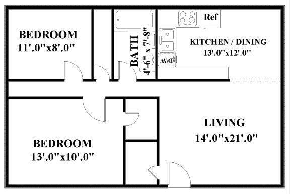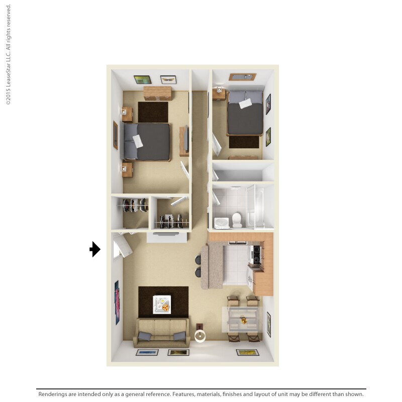 2 Beds, 1 Bath, 644 sq ftTotal Monthly PriceAvailable NowModel Gallery