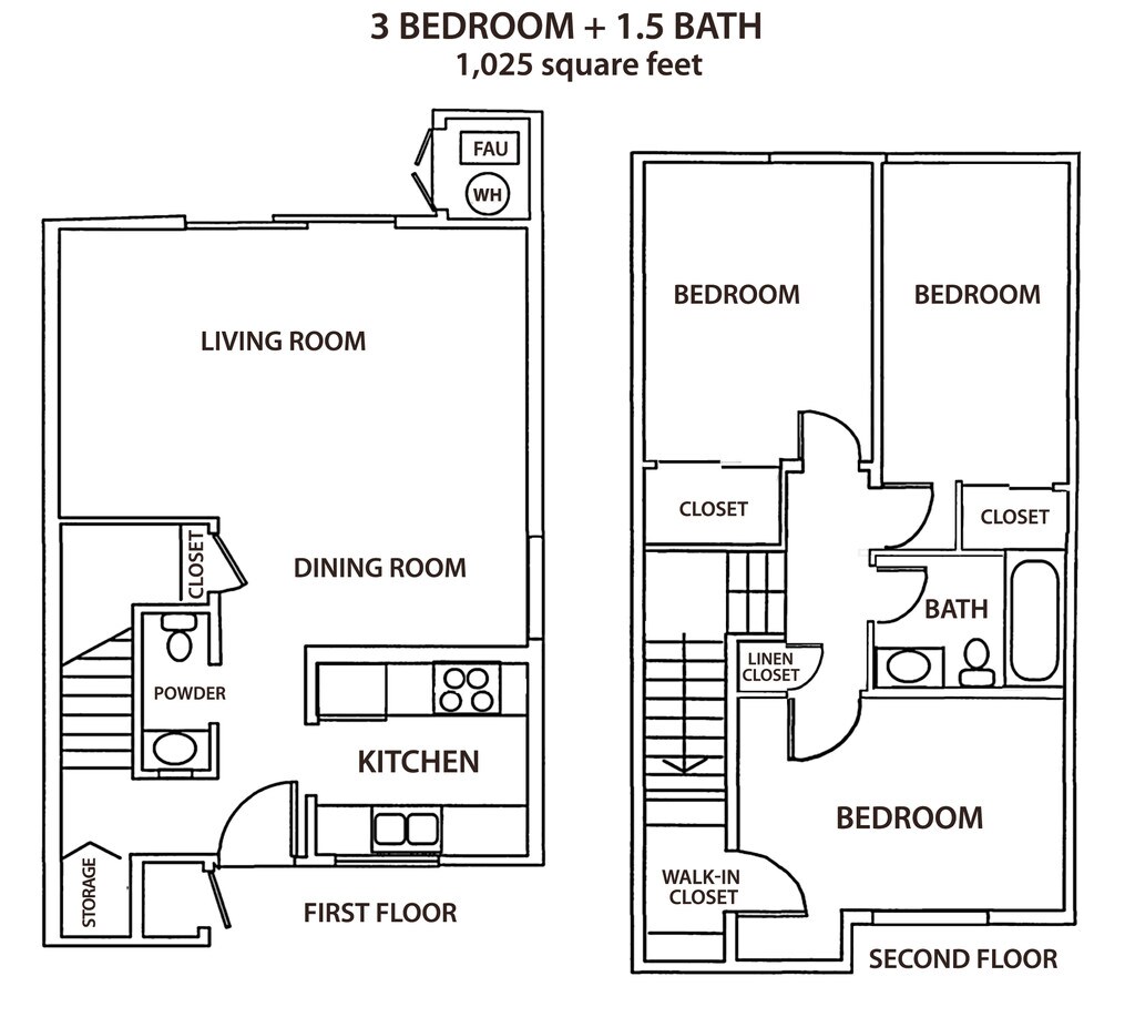 Apartment Model: Three Bedroom Townhome3 Bedroom, 1.5 Bath, 1025 sq ftUnavailable![]()