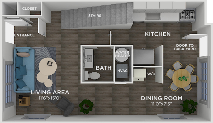 3BR/1.5BA Townhome Gray - Floorplan 2 ![]()