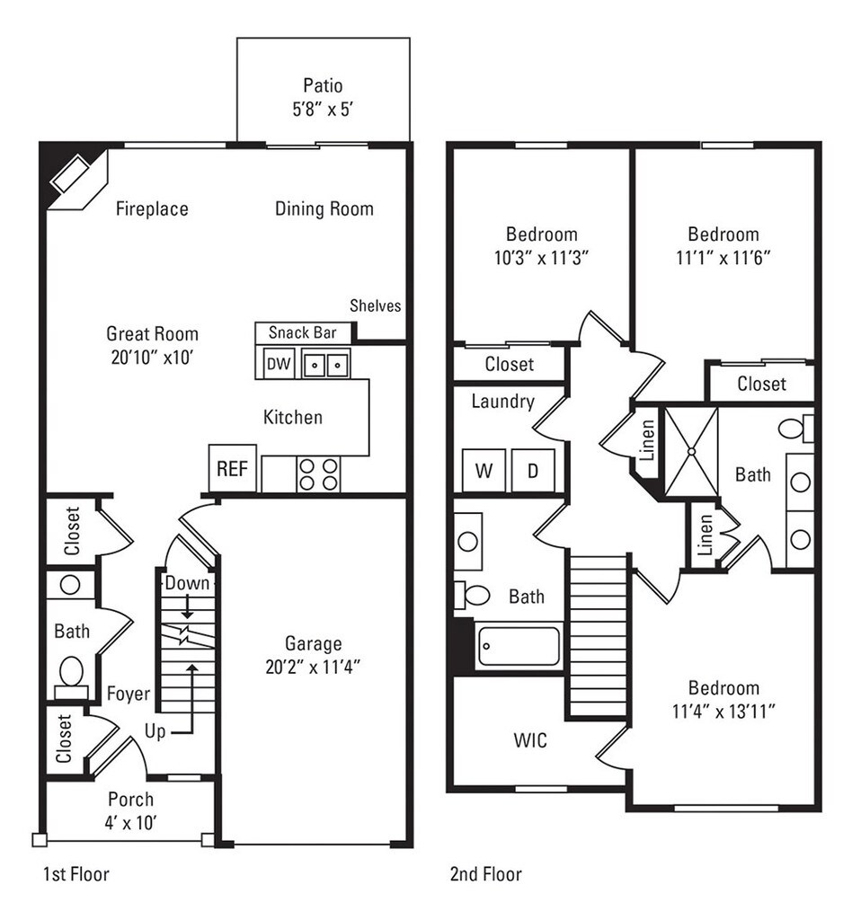 3 Bedroom, 2.5 Bath Townhome 1,405 sq. ft.