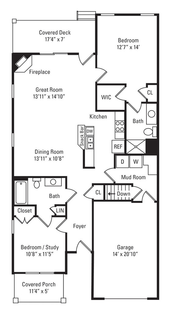2 Bedroom, 2.5 Bath Townhome 1,263 sq. ft. - Floorplan 1 3 Bedrooms