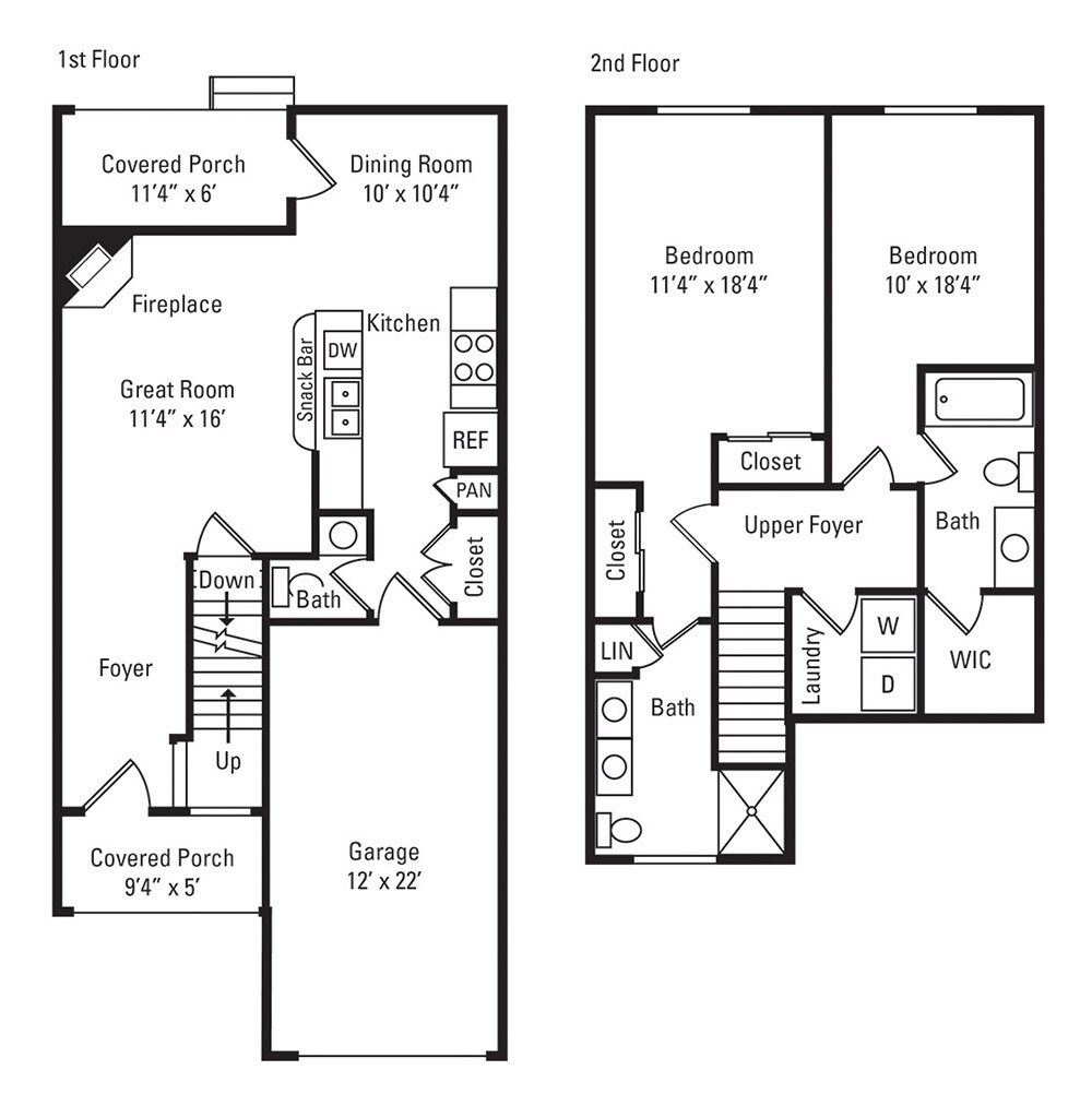 3 Bedroom, 2.5 Bath Townhome 1,405 sq. ft. - Floorplan 1