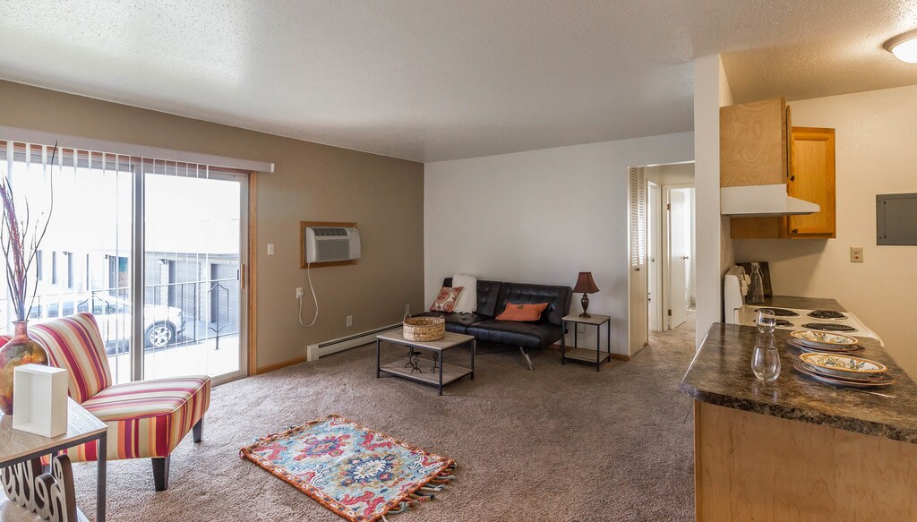 Village Pointe Apartments in Mitchell, SD offer 1, 2, & 3 bedroom apartments with a great location near shopping and dining. Village Pointe has a variety of features you’ll love including optional garages on-site, many updated units, and some floor plans that have balconies. Village Pointe is pet friendly.* *Cats only with a maximum of 2, additional pet rent applies of $45/month for 1st cat and $25/month 2nd cat. Optional 12 x 26 garages on-site available to rent for $80/month. Leasing Special: Earn a $200 gift card for a signed lease in the month of July!