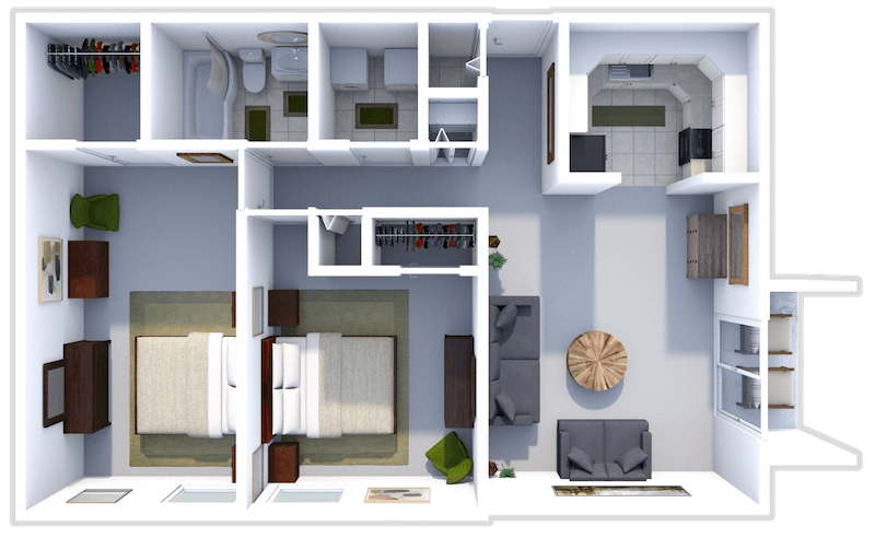 2 Beds, 1 Bath, 876 sq ftAvailable NowModel Gallery