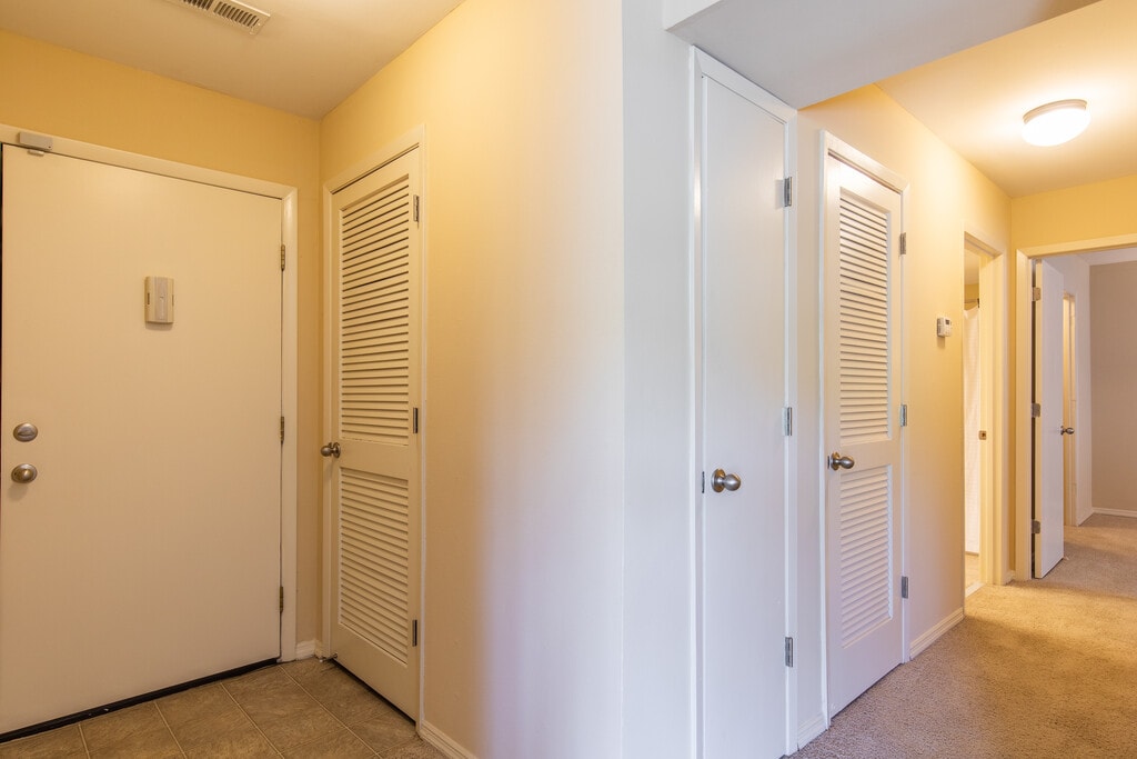 - mirrored bypass closet door in each apartment