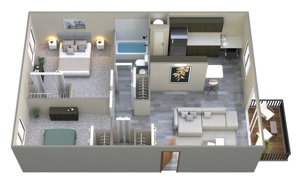 2 Beds, 1 Bath, 800 sq ftAvailable NowModel Gallery