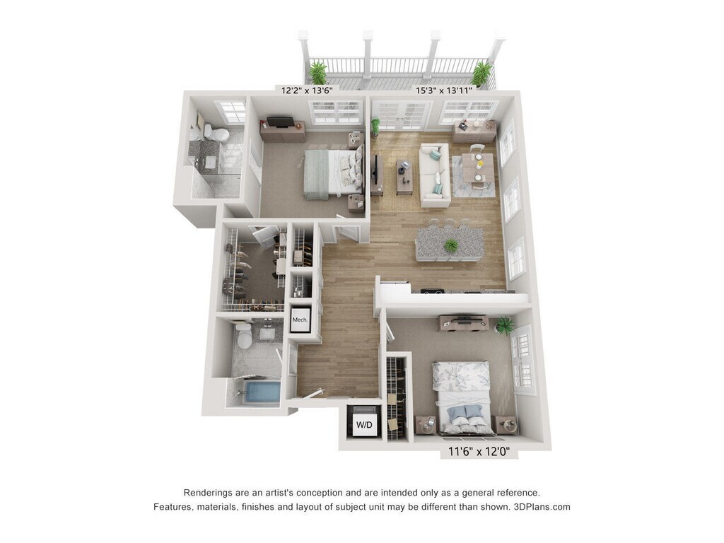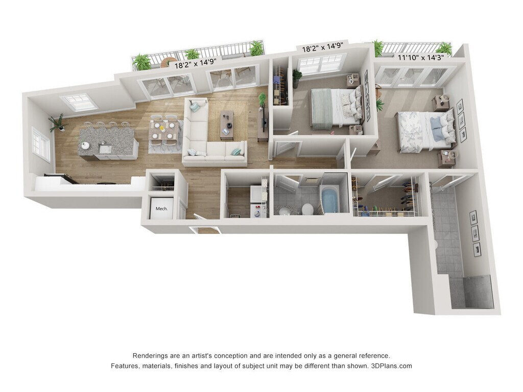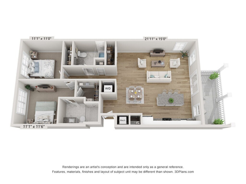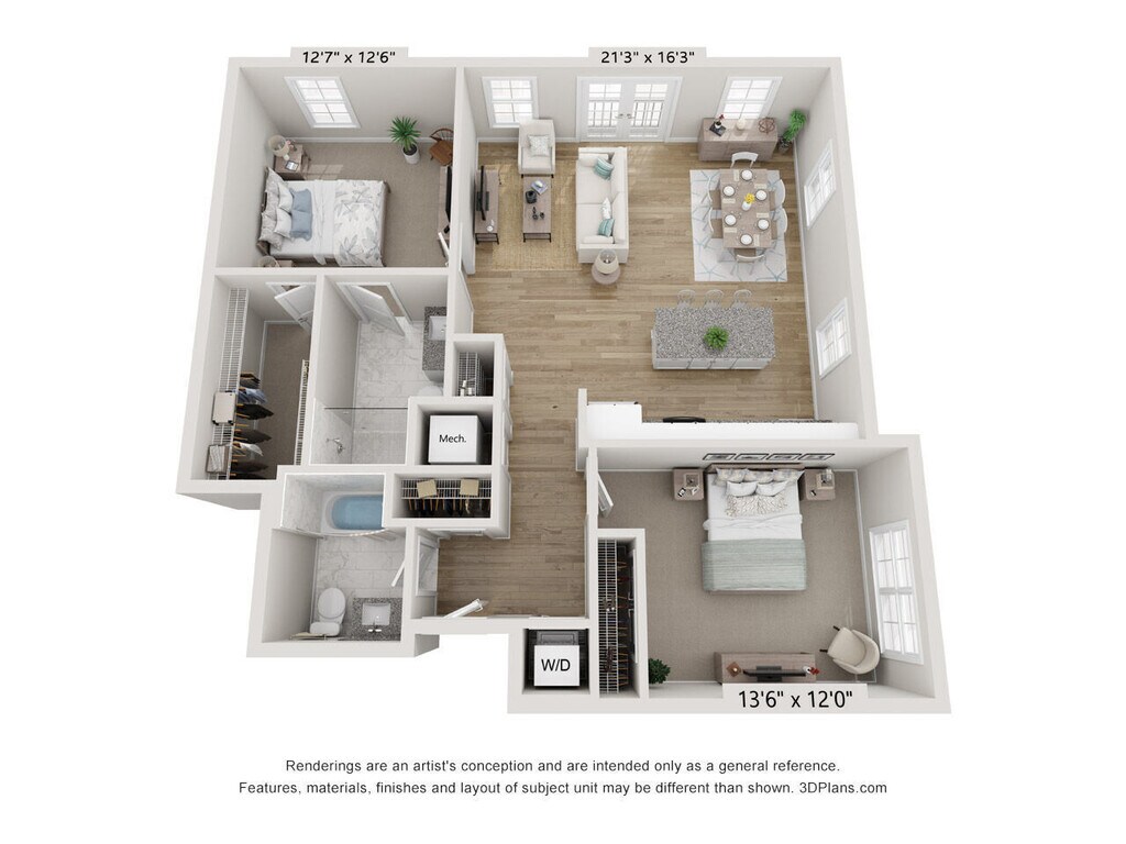 Apartment Model: The American Holly$2,1602 Bedroom, 2 Bath, 943 sq ftUnavailableFloor plans are artist's rendering. All dimensions are approximate. Actual product and specifications may vary in dimension or detail. Not all features are available in every rental home. Please see a representative for details.