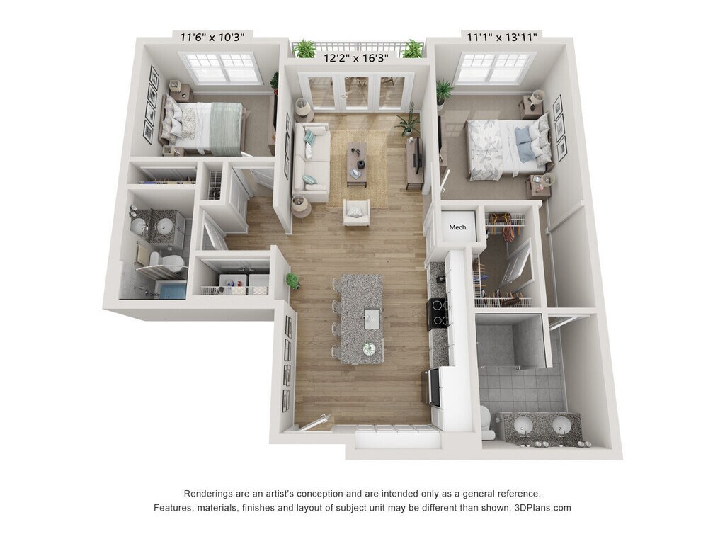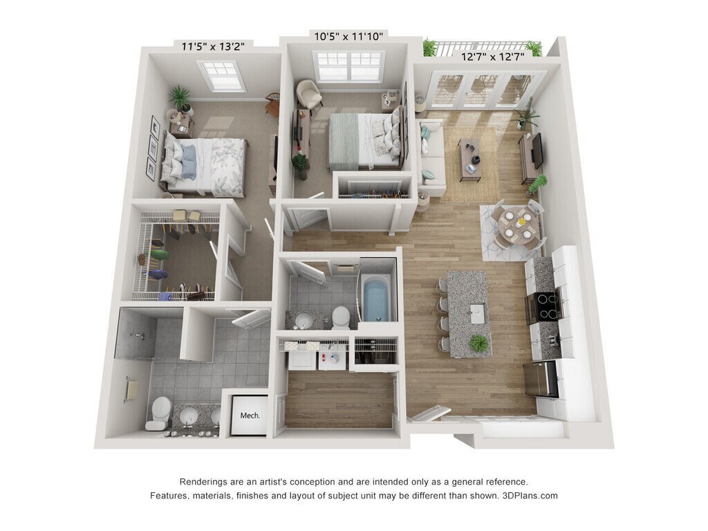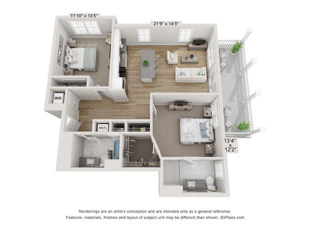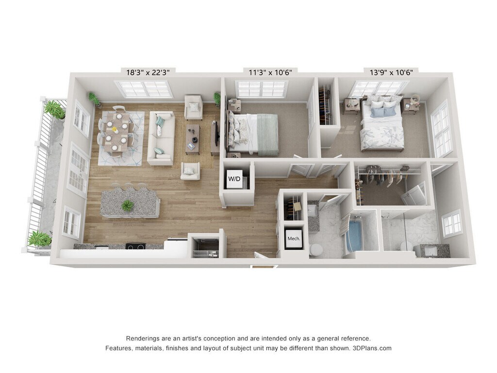 Apartment Model: The American Holly$2,1602 Bedroom, 2 Bath, 943 sq ftUnavailableFloor plans are artist's rendering. All dimensions are approximate. Actual product and specifications may vary in dimension or detail. Not all features are available in every rental home. Please see a representative for details.