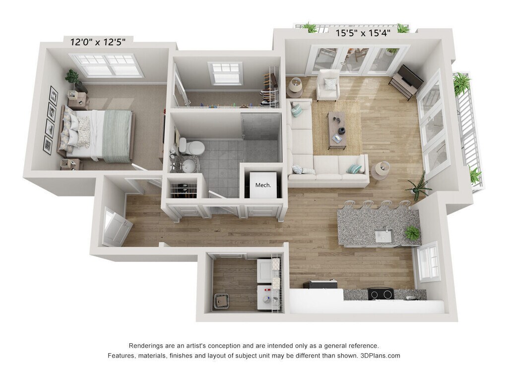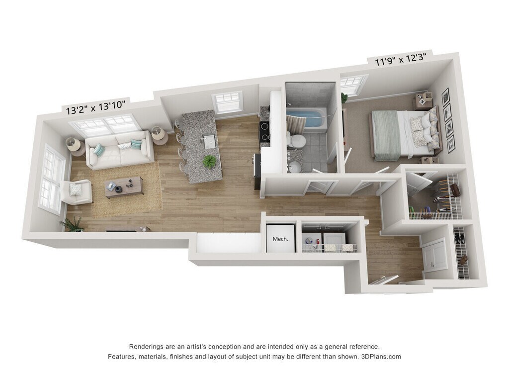 Apartment Model: The American Sycamore$1,6501 Bedroom, 1 Bath, 613 sq ftUnavailableFloor plans are artist's rendering. All dimensions are approximate. Actual product and specifications may vary in dimension or detail. Not all features are available in every rental home. Please see a representative for details.