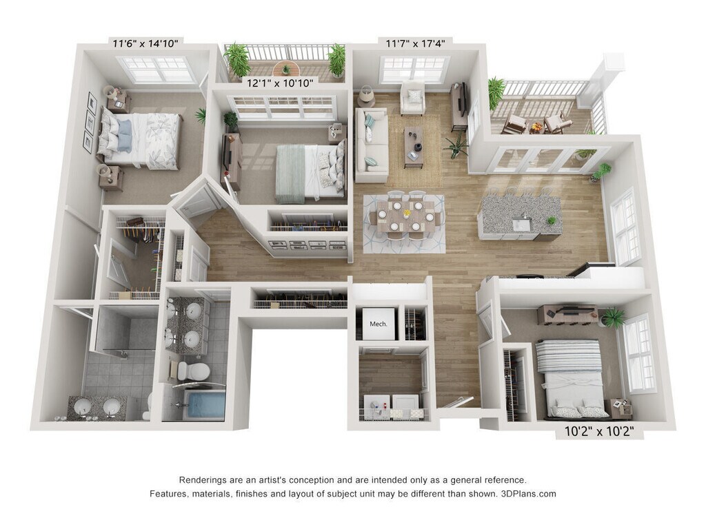 The White Ash - Floorplan 1 Floor plans are artist's rendering. All dimensions are approximate. Actual product and specifications may vary in dimension or detail. Not all features are available in every rental home. Please see a representative for details.