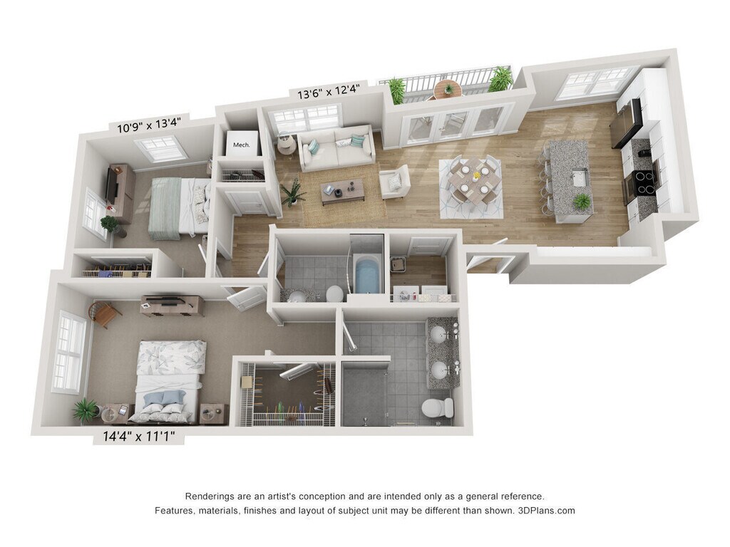 Apartment Model: The Ashley$1,6851 Bedroom, 1 Bath, 656 sq ftUnavailableFloor plans are artist's rendering. All dimensions are approximate. Actual product and specifications may vary in dimension or detail. Not all features are available in every rental home. Please see a representative for details.