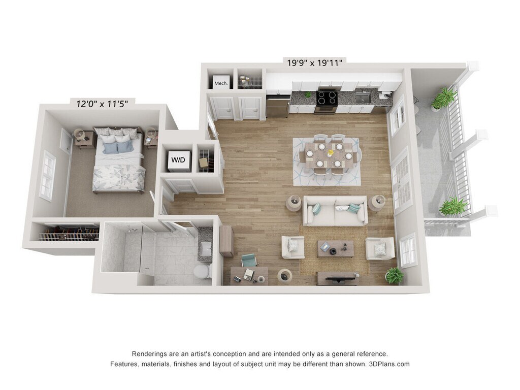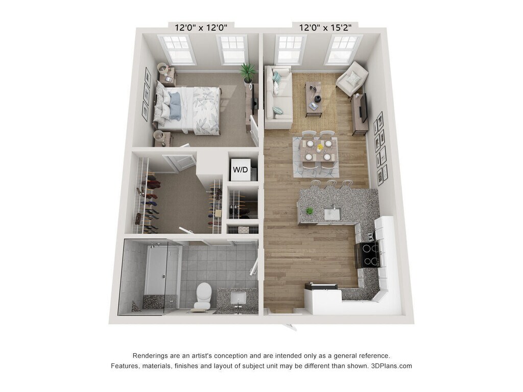 Apartment Model: The LoudonFrom $1,7501 Bedroom, 1 Bath, 737 sq ftAvailable July 8, 2026Floor plans are artist's rendering. All dimensions are approximate. Actual product and specifications may vary in dimension or detail. Not all features are available in every rental home. Please see a representative for details.