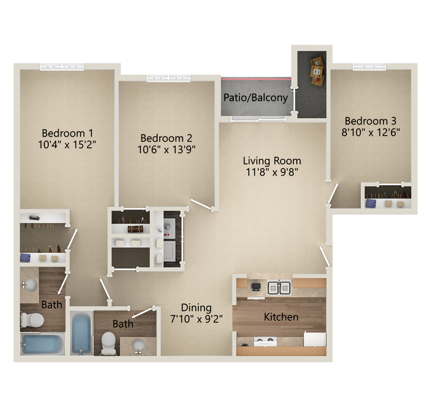 3 Beds, 2 Baths, 1095 sq ftModel Gallery