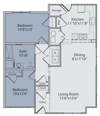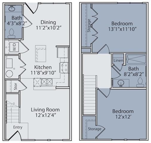 Two Bedroom Townhome - Floorplan 2 2 Beds, 2 baths