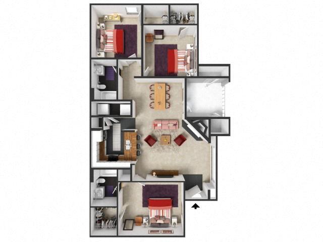 Apartment Model: Oxford3 Bedroom, 2 Bath, 1300 sq ftUnavailable![]()