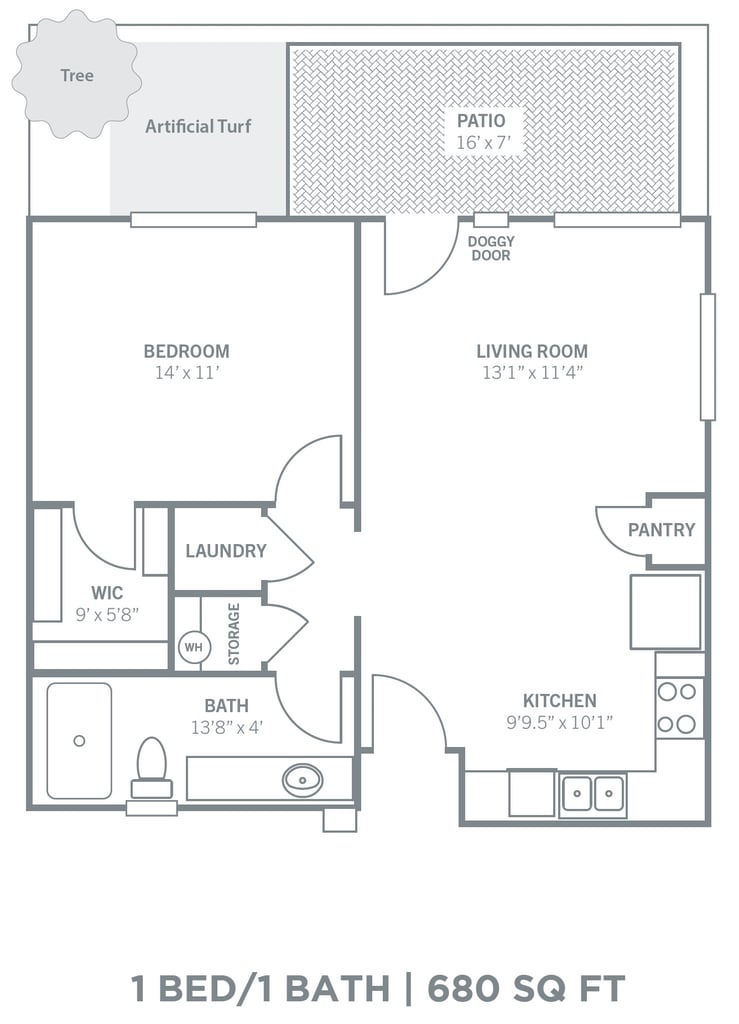 1 Bed, 1 Bath, 680 sq ftModel Gallery