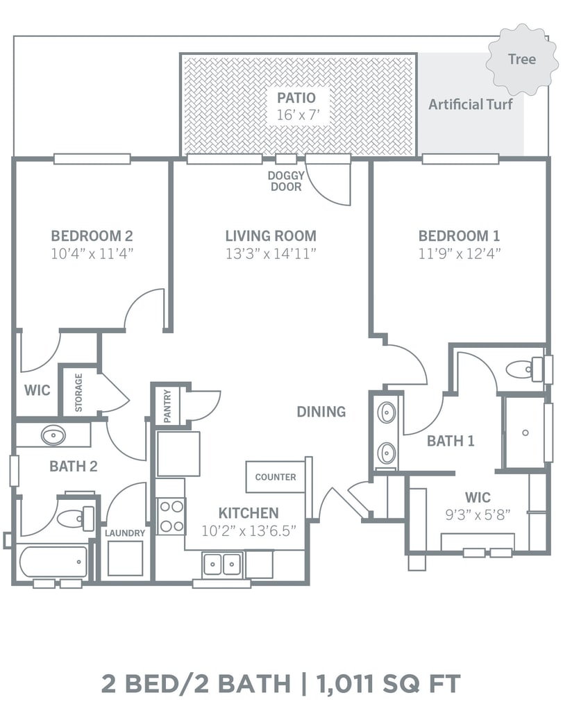 Apartment Model: 2 Bed 2 BathFrom $1,7962 Bedroom, 2 Bath, 1011 sq ftAvailable NowFloorplansPhotos![]()