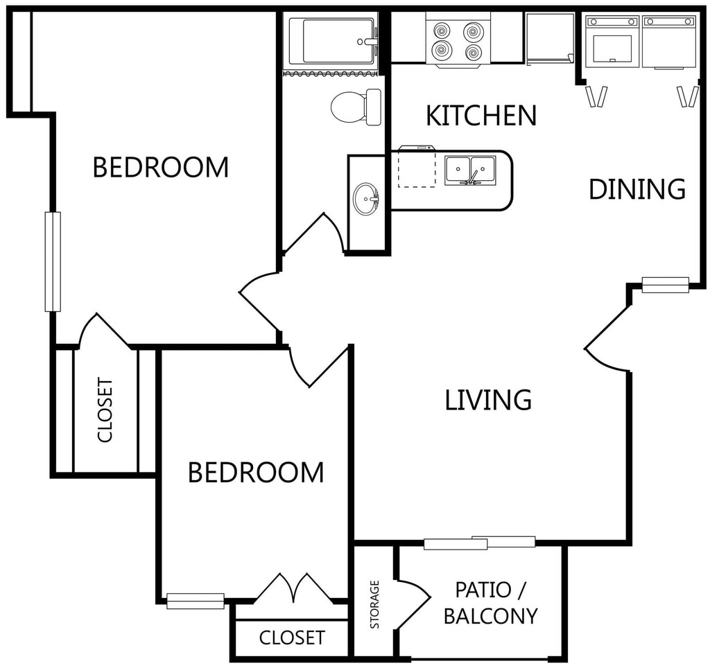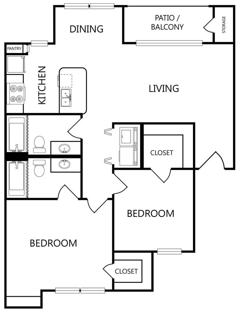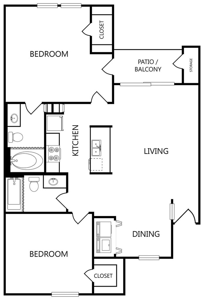 2 Beds, 2 Baths, 1001 sq ftAvailable NowLargest 2 BedroomThis is the largest 2 Bedroom at this PropertyModel Gallery