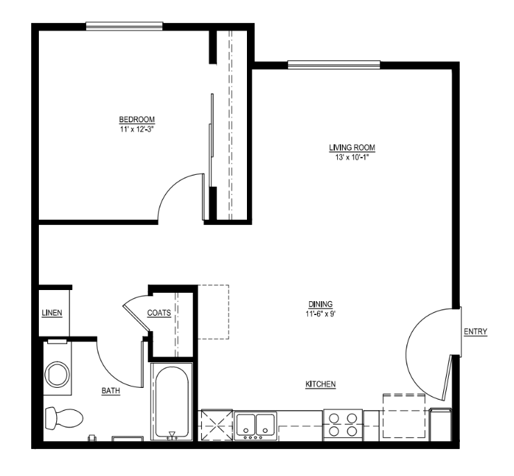 1 Bed, 1 Bath, 677 sq ftModel Gallery