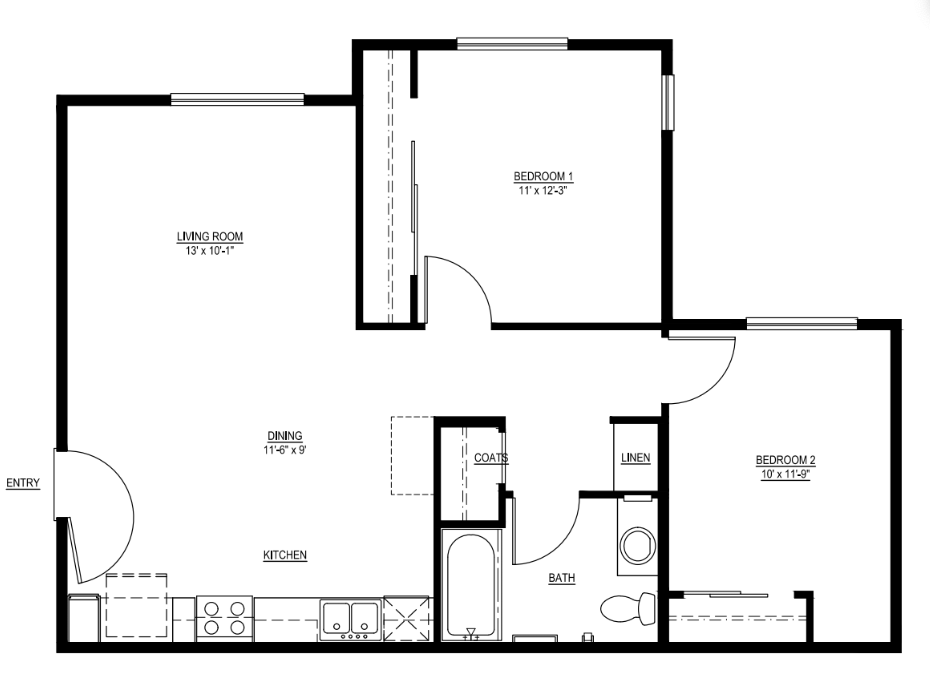 2 Beds, 1 Bath, 827 sq ftLargest 2 BedroomThis is the largest 2 Bedroom at this PropertyModel Gallery