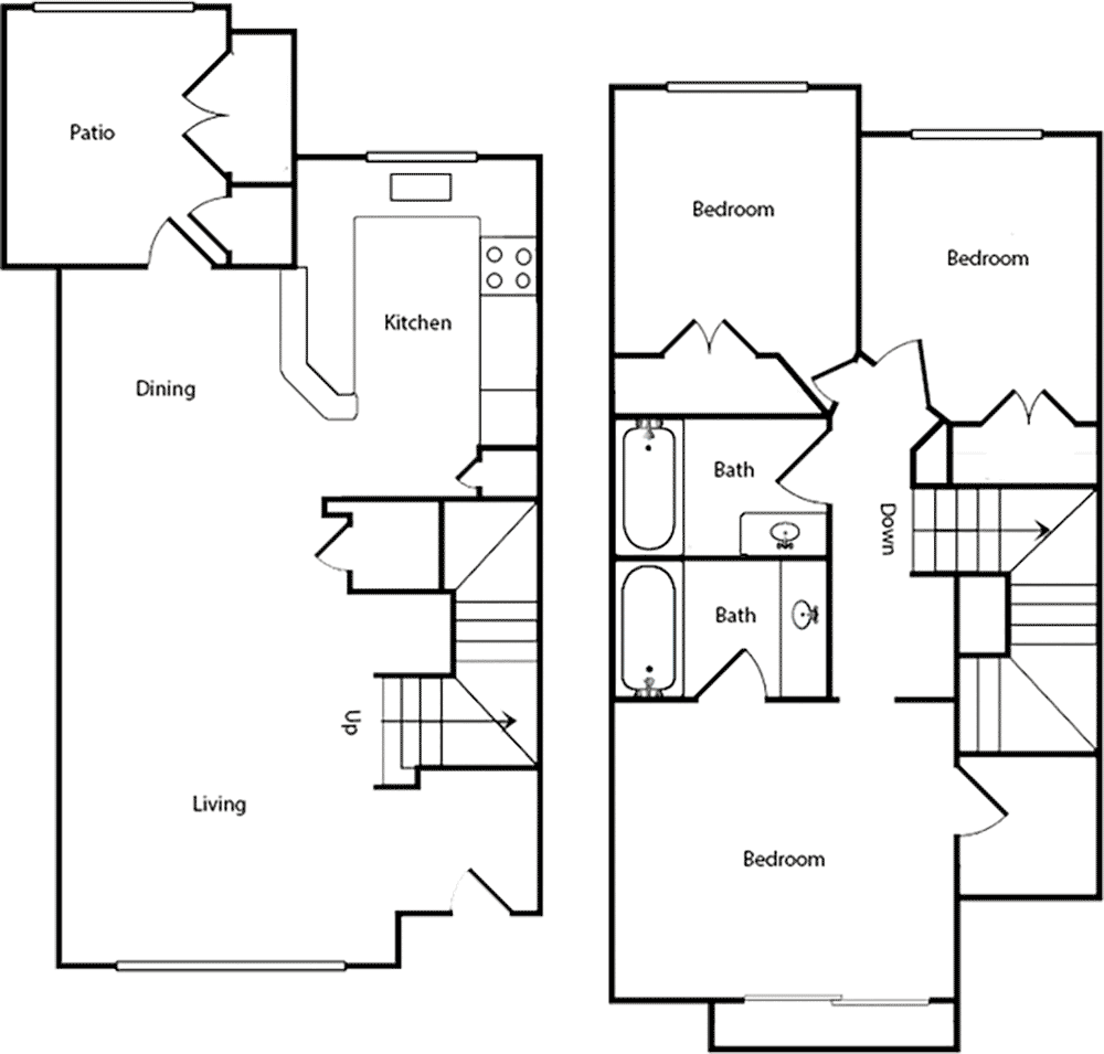 Apartment Model: BTH50Call For Rates2 Bedroom, 2 Bath, 950 sq ftUnavailableBTH50 - Floorplan 1 3 Bedrooms