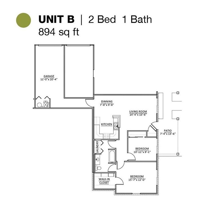 Apartment Model: 2 Bed 1 BathCall For Rates2 Bedroom, 1 Bath, 894 sq ftUnavailable2 Bed 1 Bath - Floorplan 1 2 Bed 2 Bath