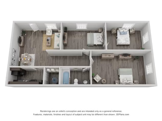 3 Beds, 1 Bath, 650-809 sq ftAvailable NowModel Gallery