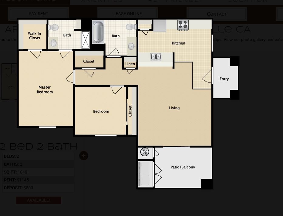Apartment Model: 2 Bedroom$1,9302 Bedroom, 2 Bath, 1040 sq ftAvailable Now![]()