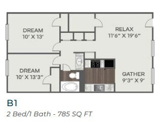 Apartment Model: B1From $1,0902 Bedroom, 1 Bath, 785 sq ftAvailable Now![]()