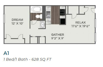 Apartment Model: A1From $1,0101 Bedroom, 1 Bath, 629 sq ftAvailable Now![]()