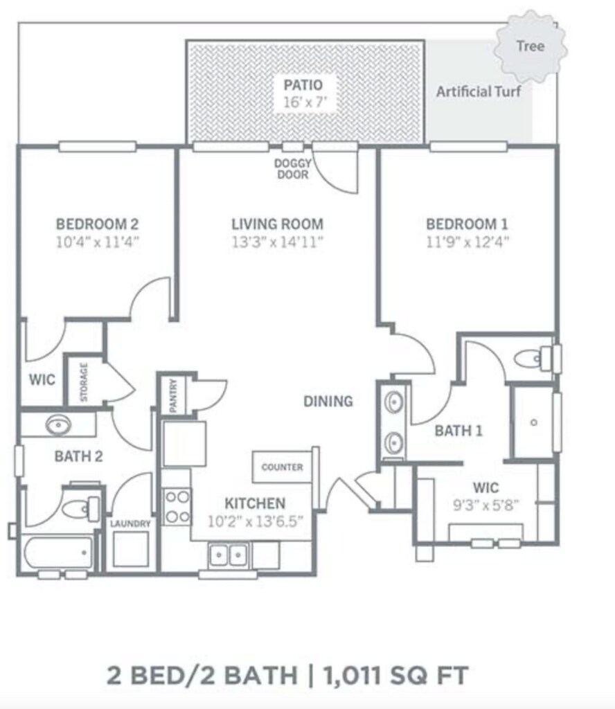 Apartment Model: 2 Bedroom, 2 BathroomFrom $1,9752 Bedroom, 2 Bath, 1011 sq ftAvailable NowFloorplansPhotos![]()
