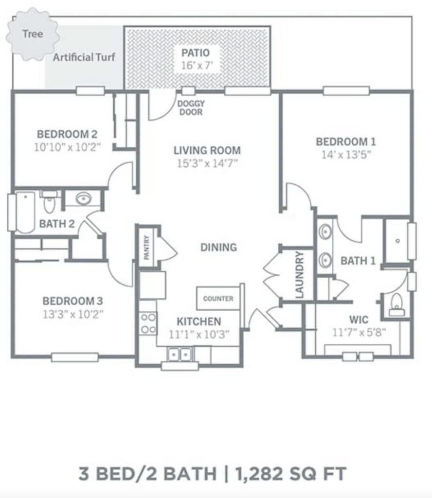 Apartment Model: 3 Bedroom, 2 BathroomFrom $2,4253 Bedroom, 2 Bath, 1282 sq ftAvailable NowFloorplansPhotos![]()