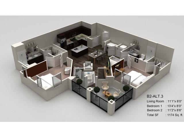 2 Beds, 2 Baths, 1078 sq ftAvailable NowModel Gallery