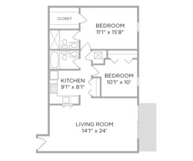 Apartment Model: Bristol I2 Bedroom, 1 Bath, 836 sq ftAvailable November 21, 2025![]()
