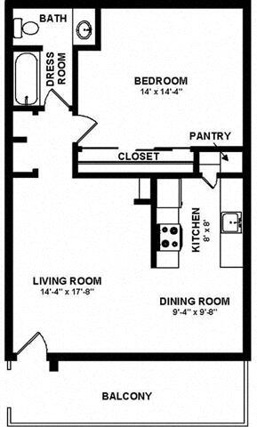 Apartment Model: StudioCall For RatesStudio, 1 Bath, 414 sq ftUnavailableStudio - Floorplan 1 1 Bedroom