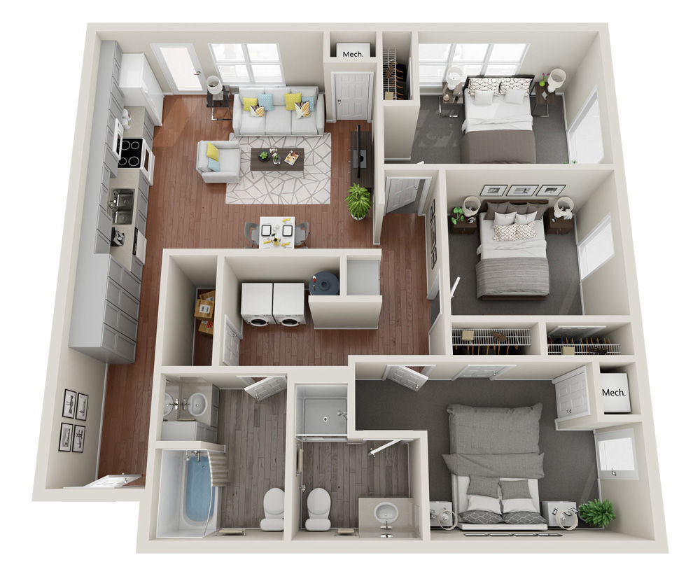 3 Beds, 2 Baths, 1129 sq ftModel Gallery