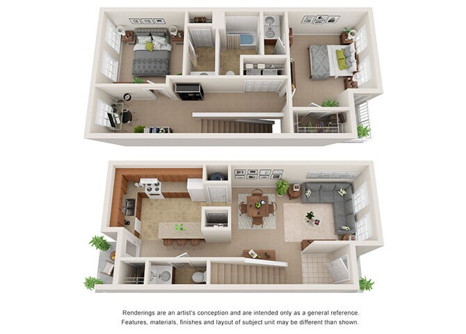 2 Beds, 2 Baths, 1078 sq ftModel Gallery
