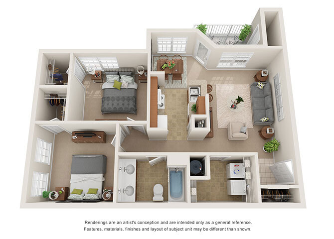 2 Beds, 2 Baths, 972 sq ftModel Gallery