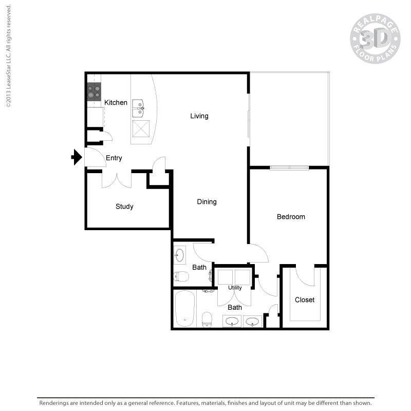 Studio, 1 Bath, 600 sq ftModel Gallery