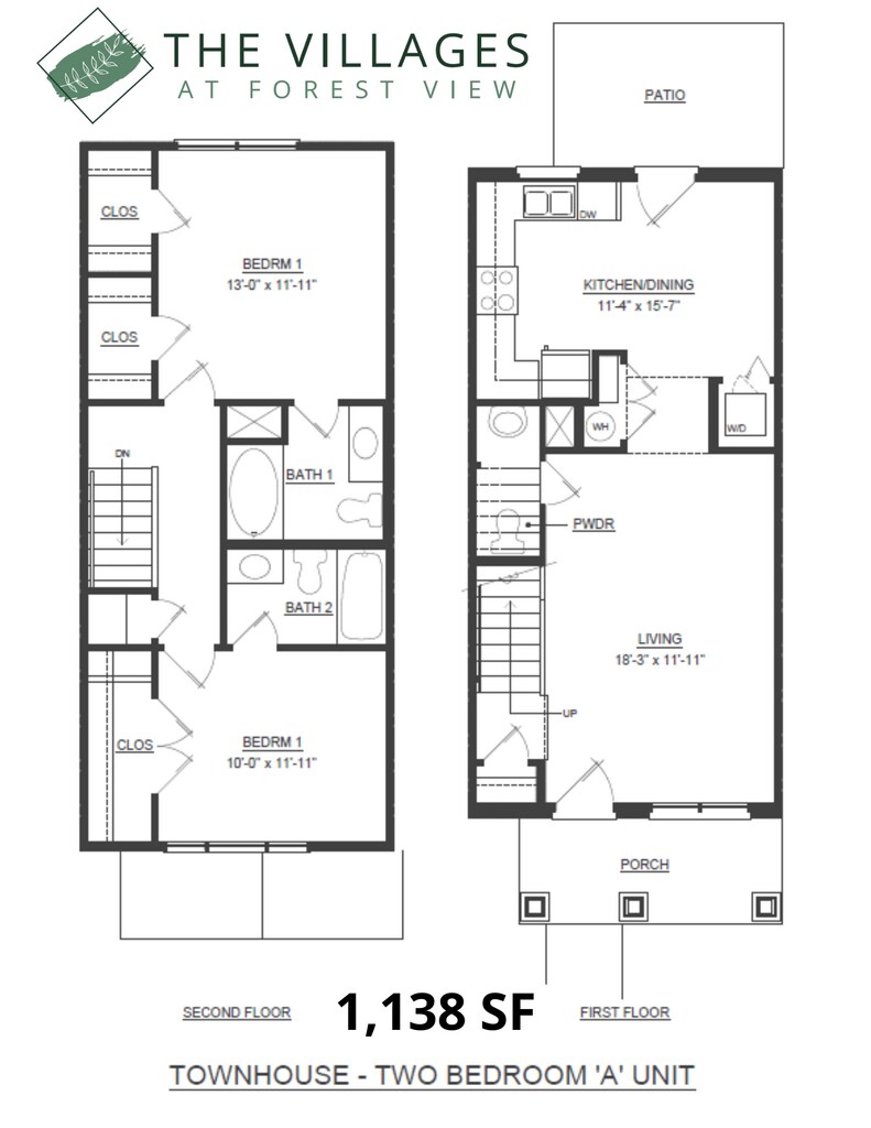 Townhouse - 2 Bedroom A Unit - Floorplan 1