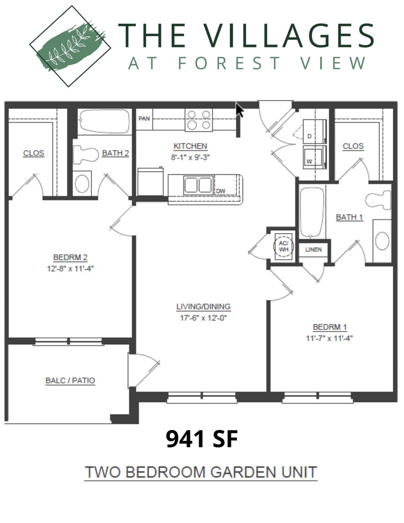 Studio to 2 Bedroom Apartments at Villages at Forest View currently range from $1,303 to $1,884