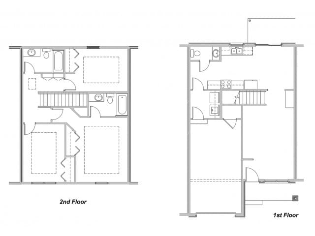 1x1 Townhome - Floorplan 2 2 Bedrooms