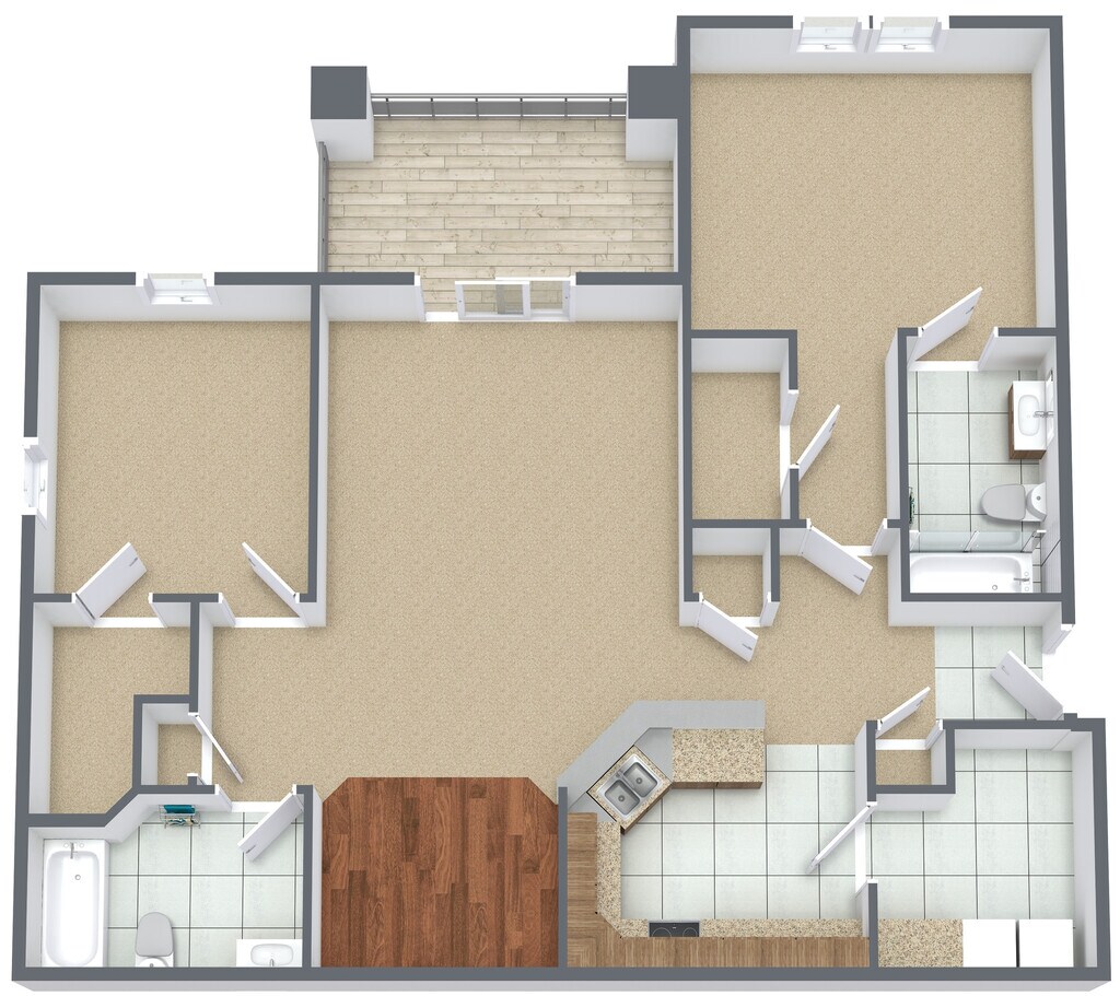2x2 - Floorplan 13 Apartment Unit: B301Apartment Model: 2x2From $1,2002 Bedroom, 2 Bath, 1162 sq ftAvailable November 14, 20253 Bedrooms