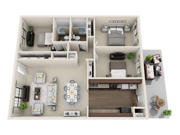 Apartment Model: Jewel3 Bedroom, 2 Bath, 1231 sq ftAvailable NowFloorplansPhotos![]()