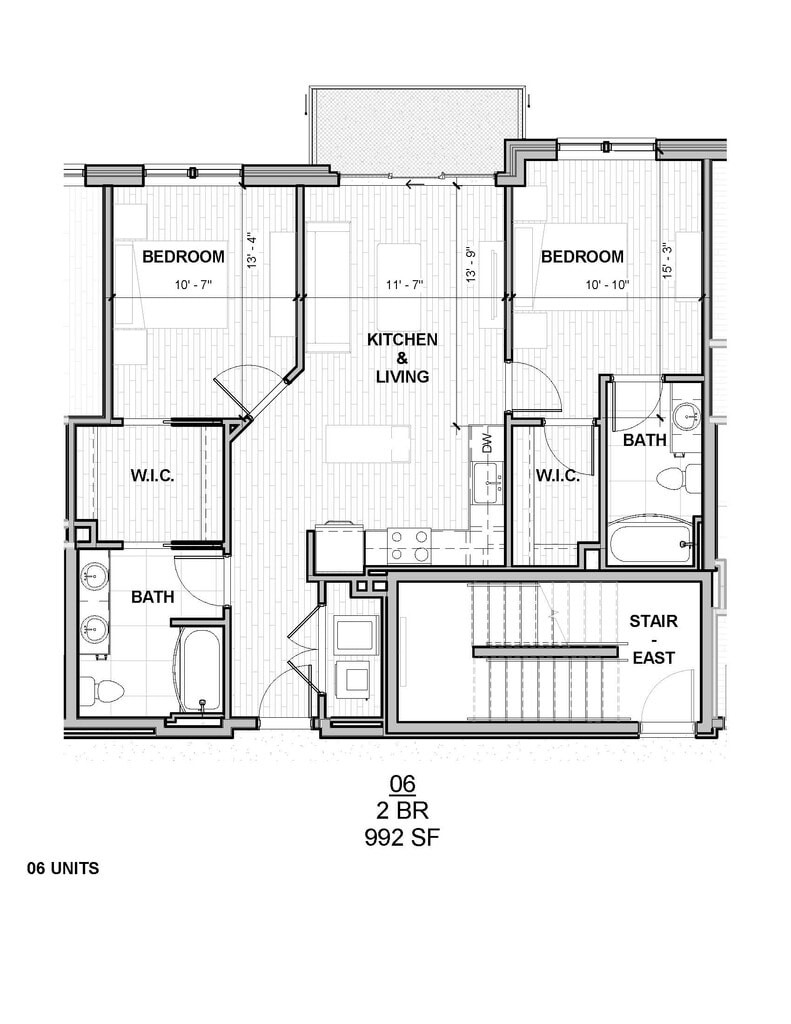 Two Bedroom 992 SF - Floorplan 1 Apartment Unit: 2-2306Apartment Model: Two Bedroom 992 SF$1,5502 Bedroom, 2 Bath, 992 sq ftAvailable April 5, 2026Two Bedroom 1056 SF