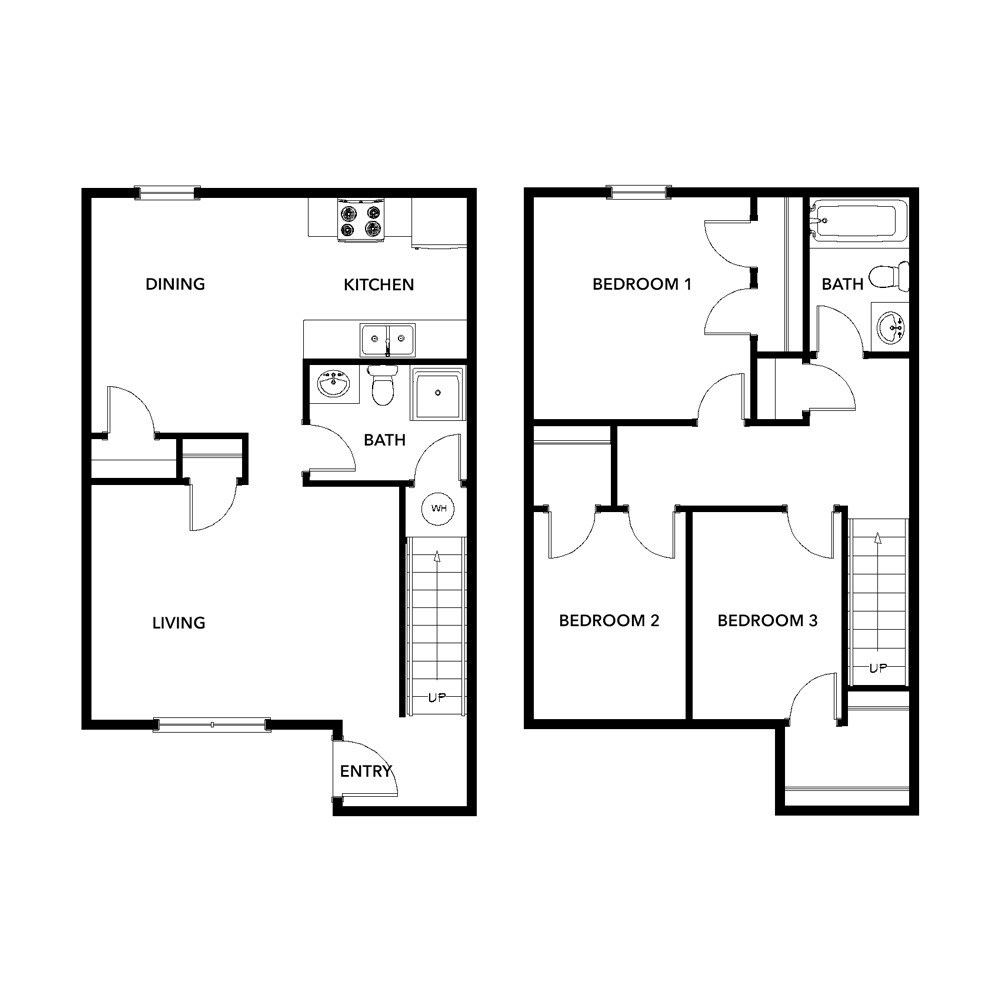 3 Beds, 2 Baths, 1290 sq ftModel Gallery