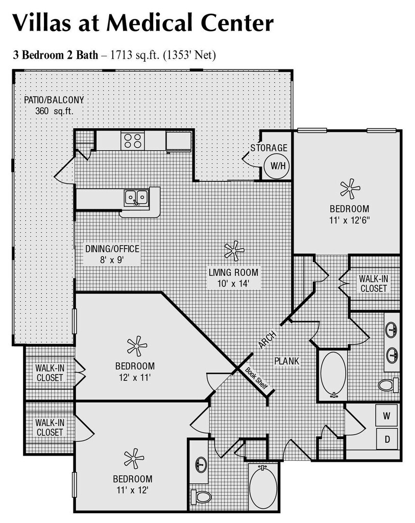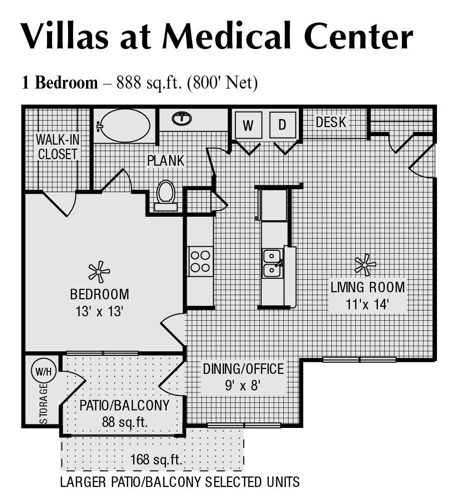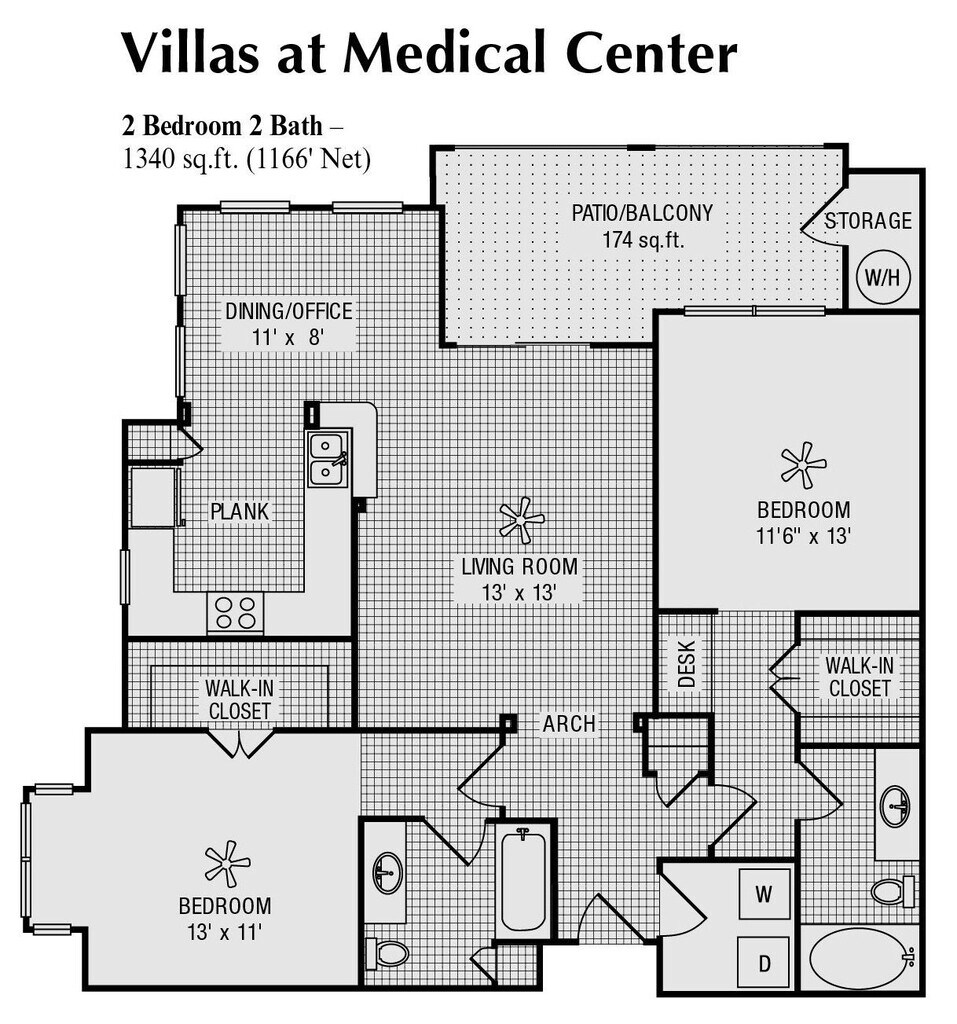 Villas At Medical Center offers 1 to 3 Bedroom apartments starting from $873 and having 676–1,353 sq ft. Here is the current pricing and availability: