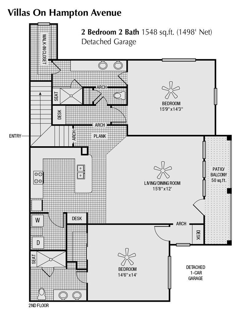 1 Bed 1 Bath 1-Car Garage 812 SqFt