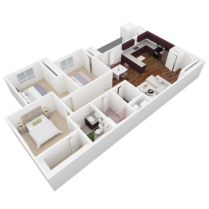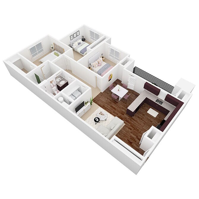 1 Bedroom to 3 Bedroom Apartments at Villas on Main currently range from $1,228 to $1,749